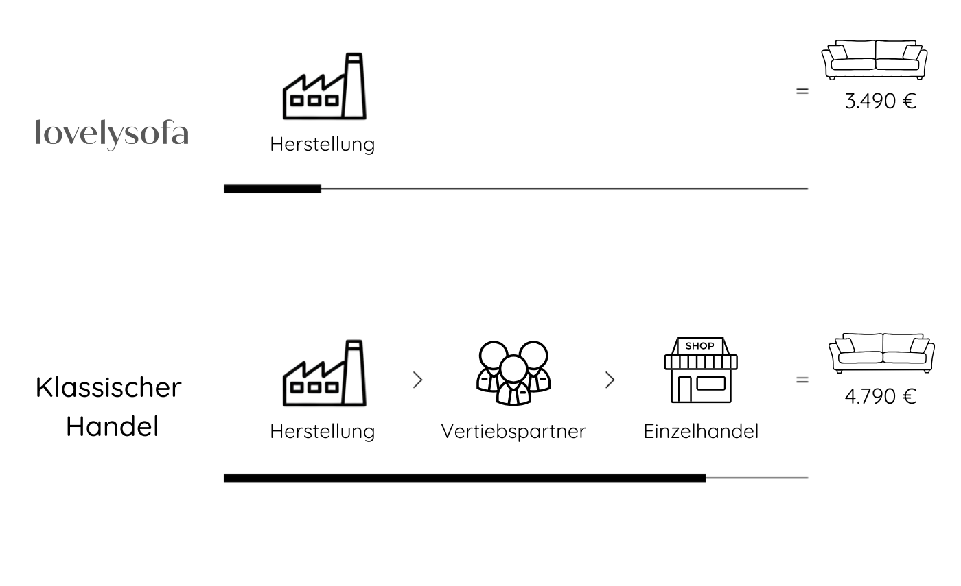 Stilvolle, modulare Sofas müssen nicht teuer sein! Bei Lovely Sofa erhalten Sie erstklassige Sofas zu fairen Preisen, da wir direkt mit unseren Herstellern zusammenarbeiten und keine Zwischenhändler einschalten. Premium-Design und erschwinglicher Luxus gehen bei uns Hand in Hand.